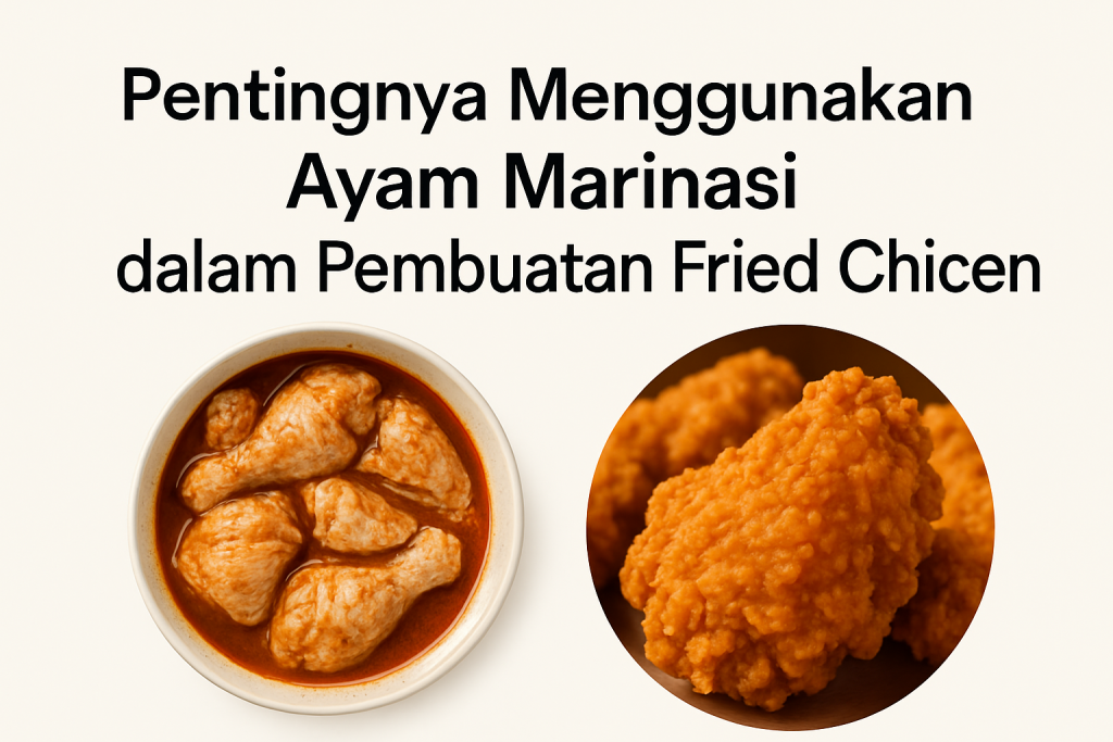Fried chicken merupakan salah satu hidangan yang sangat digemari di berbagai kalangan. Teksturnya yang renyah di luar dan juicy di dalam membuatnya menjadi pilihan utama baik untuk usaha kuliner maupun konsumsi sehari-hari. Namun, salah satu kunci keberhasilan dalam menghasilkan fried chicken yang lezat terletak pada pemilihan bahan baku, terutama ayam marinasi.